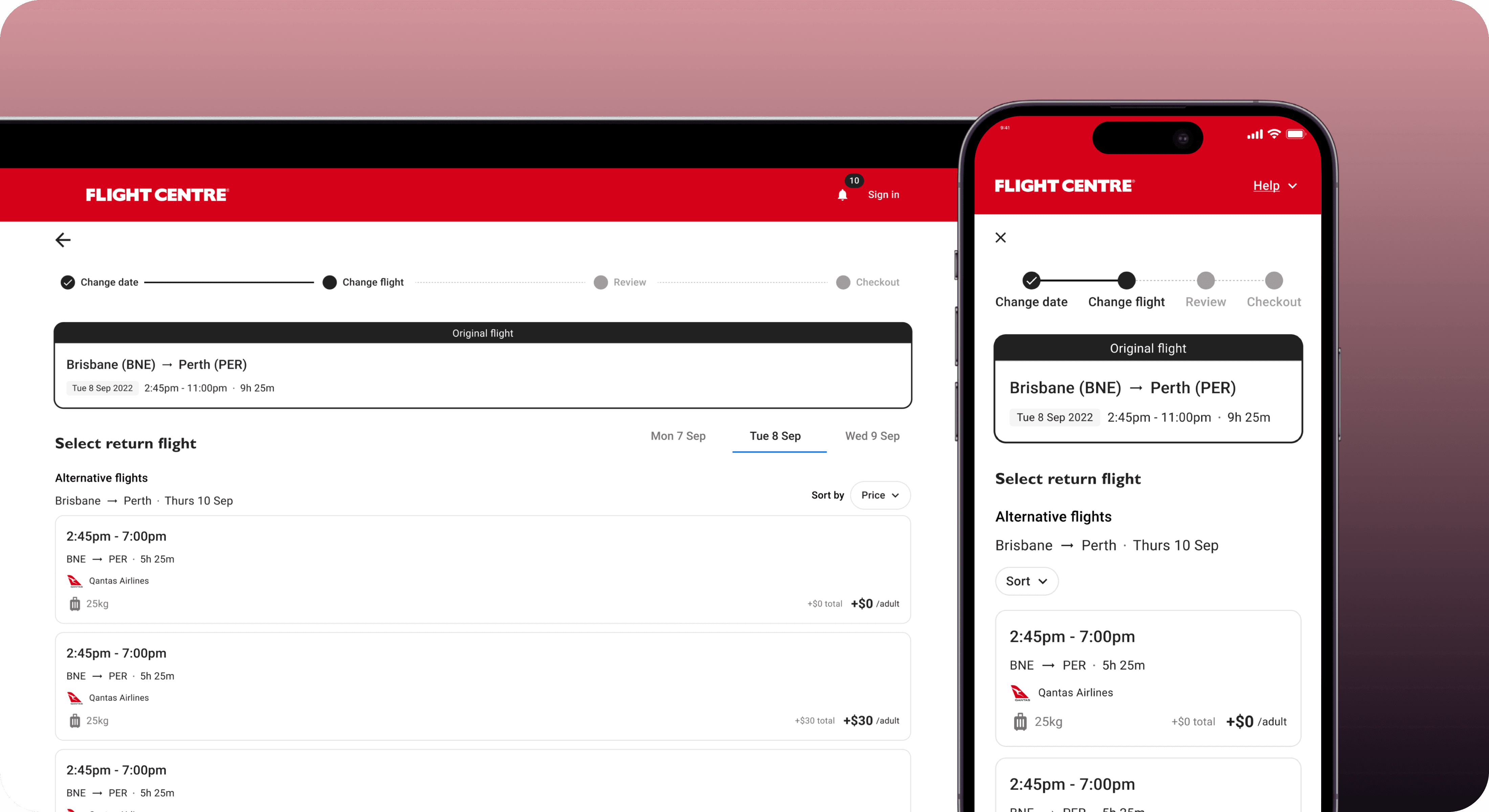 I designed an end-to-end self-serve flight change experience that allows users to sign in, manage their booking, select new flights, understand fare differences, and complete checkout—reducing reliance on agents while giving customers control over their travel plans.