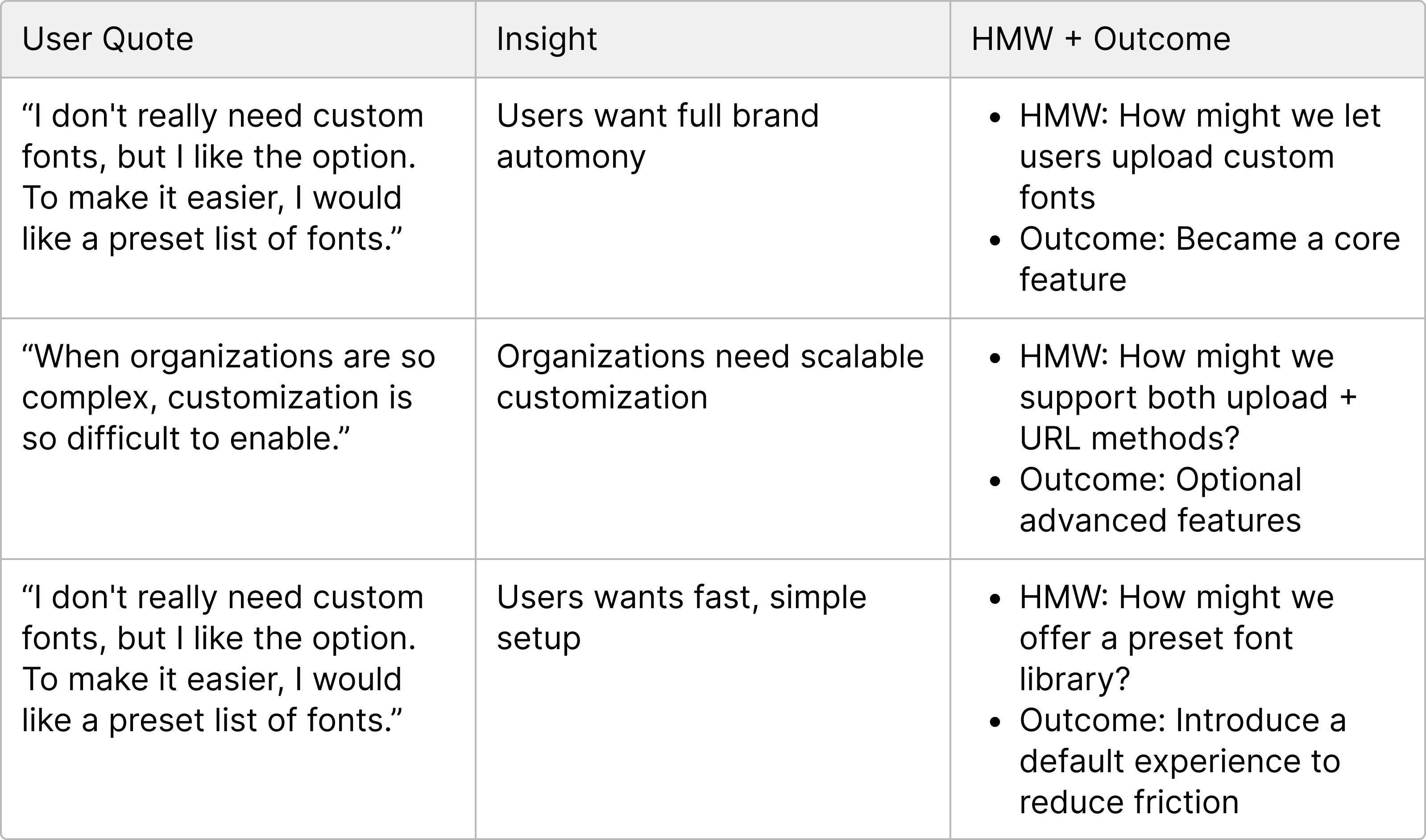 Key Insight / Result: A clearer, step-by-step flow was needed to guide users through the process. We also introduced user-defined font naming because file metadata was inconsistent.