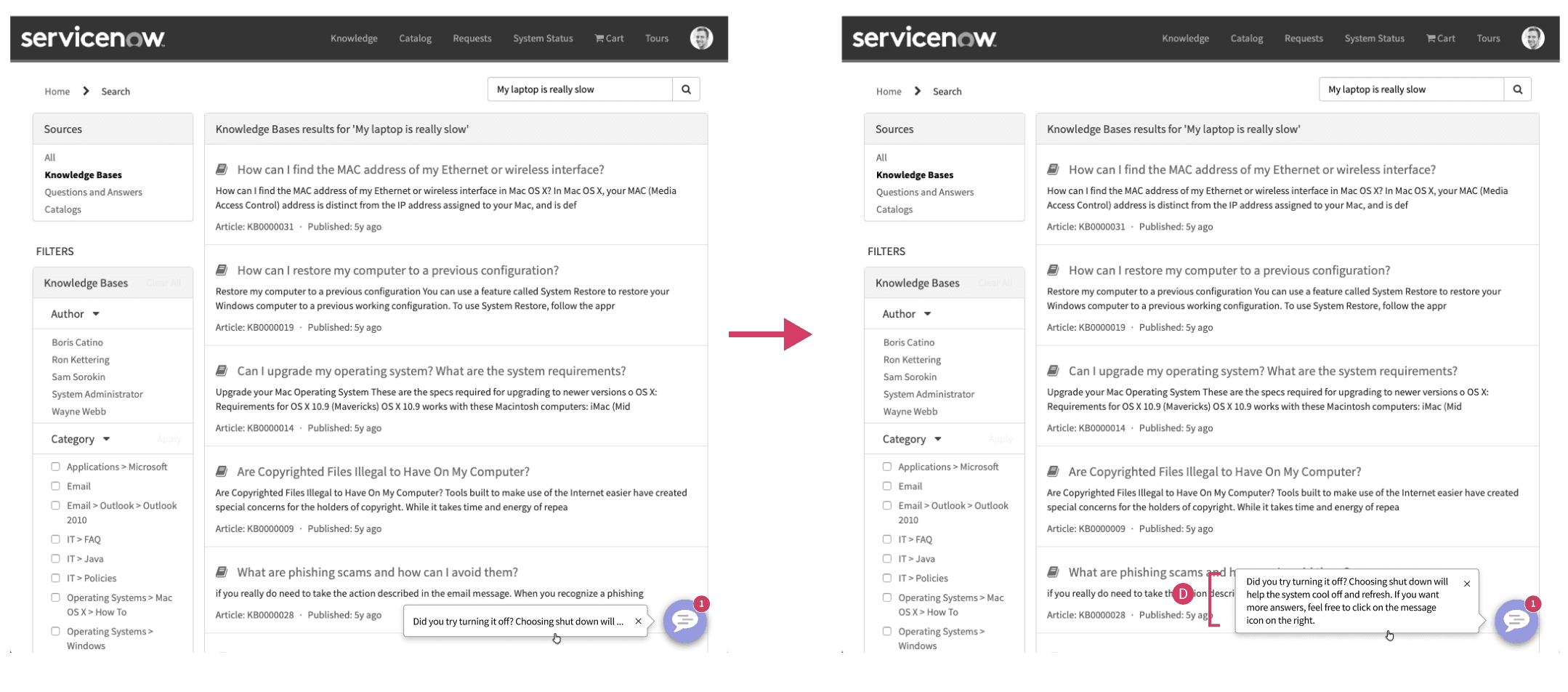 To increase engagement, we explored how the bot could anticipate user needs before being opened. By using behavioral signals (like search queries and page context), we designed a predictive interaction model that surfaced relevant help at the right moment.